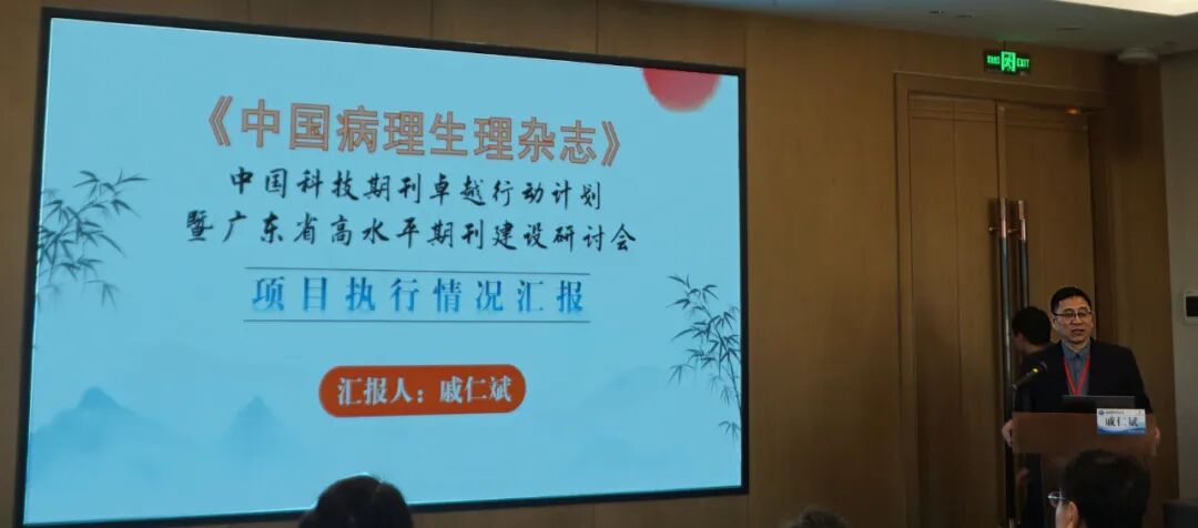 杂志编辑部主任戚仁斌教授作了《中国病理生理杂志》中国科技期刊卓越行动计划(以下简称“卓越”)和广东省高水平期刊建设(以下简称“高水平”)项目执行情况汇报。他先是简要总结了杂志“卓越”一期和“高水平”一期项目的验收情况,接着汇报了本年度“卓越“二期(2024~2028年)和“高水平”二期(2025~2028年)项目的建设情况,包括目标任务、执行情况及本年度取得的成果等,并提出杂志高质量建设期间遇到的问题、挑战以及应对策略等。